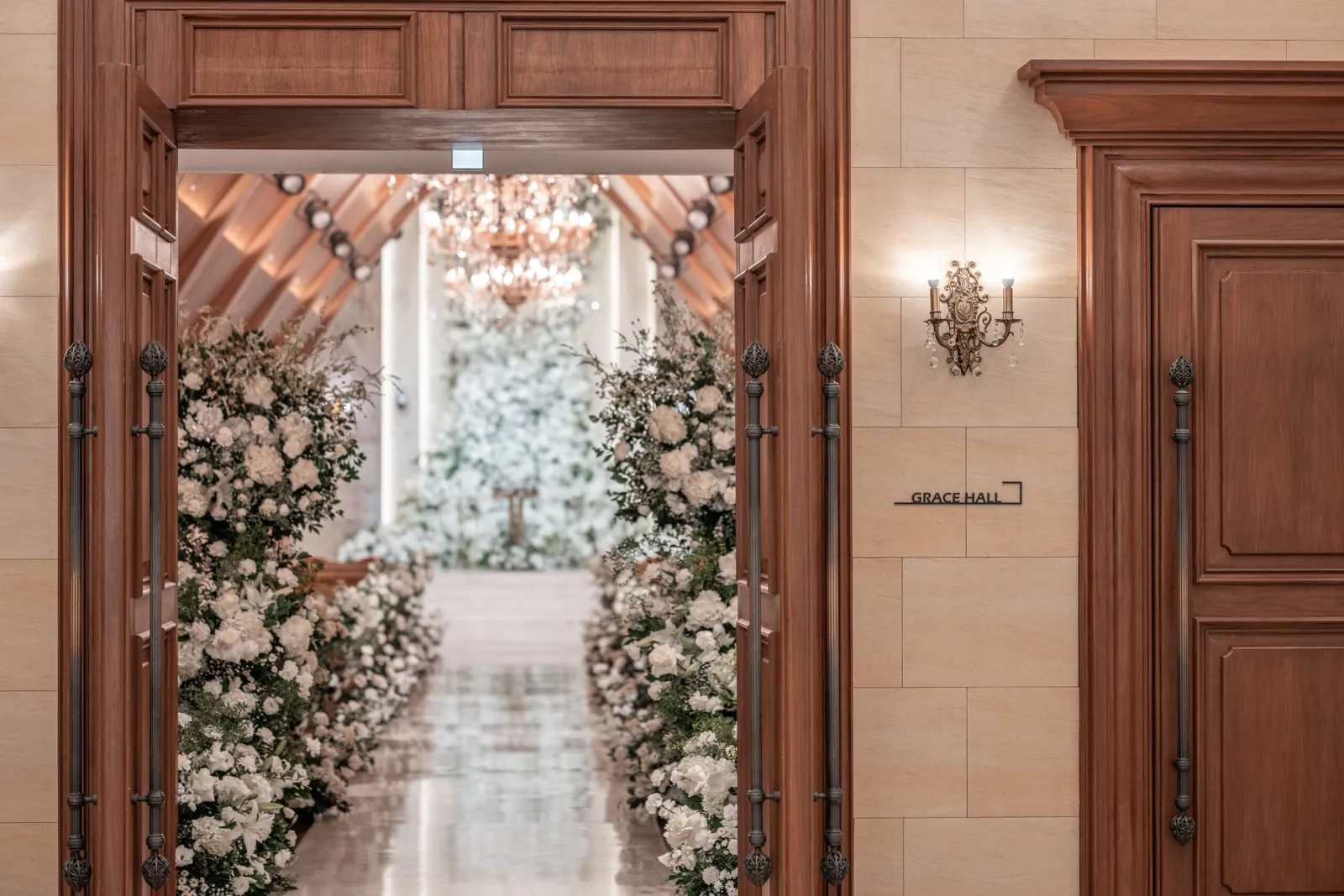 신의 축복을 의미하는 그레이스홀은 채플 웨딩홀 특유의 신성한 분위기 속에서 당신을 더욱 특별하게 만들어줍니다. 벽면과 천장을 곡선으로 연결시켜, 프라이빗한 연출과 안정감을 선사합니다.
